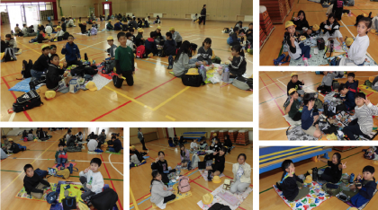 雨天だったので、学校に帰ってきてからのお弁当タイムになりました。