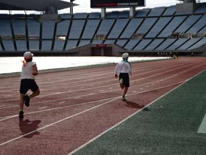 国際大会やJリーグの公式戦も行われる立派なスタジアムで、100メートル走や4×100メートルリレーを経験することができました。またひとつ、心に残る思い出ができたと思います。