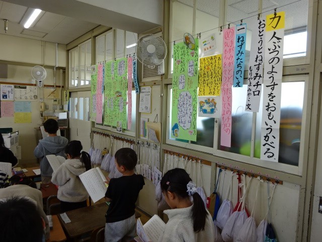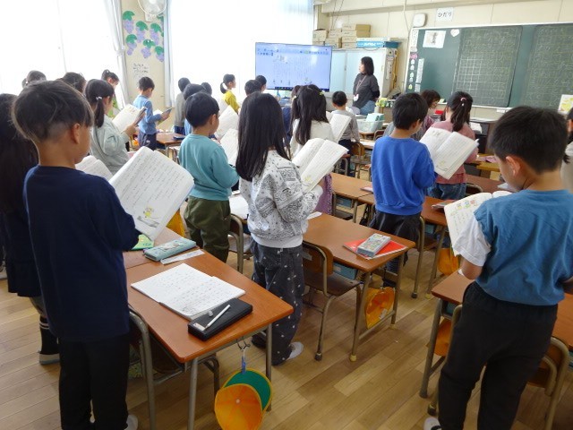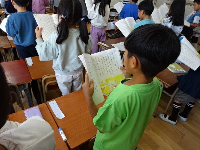 1年生が、物語文「おとうとねずみチロ」を全員で声をそろえて音読していました。