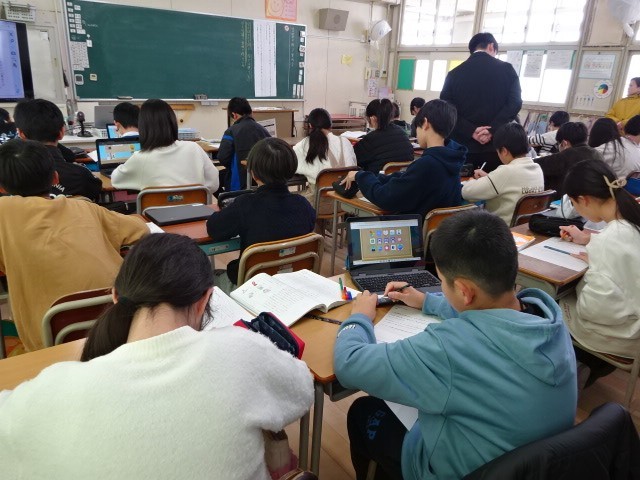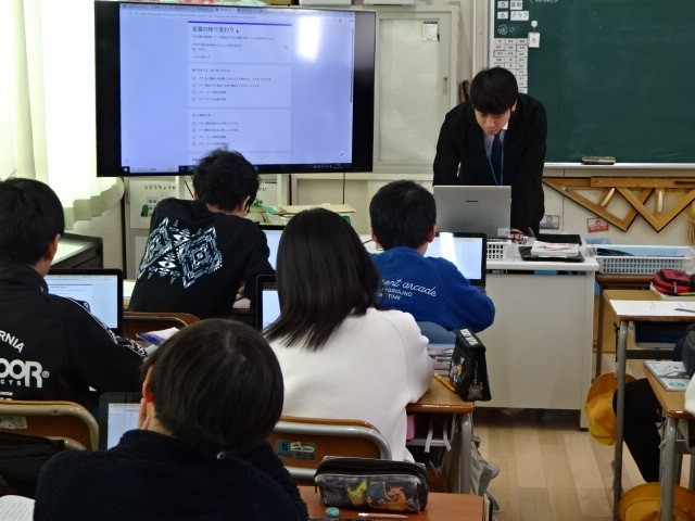 タブレットPCを活用して、学級内のアンケートを集約したり、国語に関する世論調査のデータを共有したりして学習を進めていました。