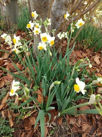 先に咲き始めたペーパーホワイトとは違う種類の水仙。