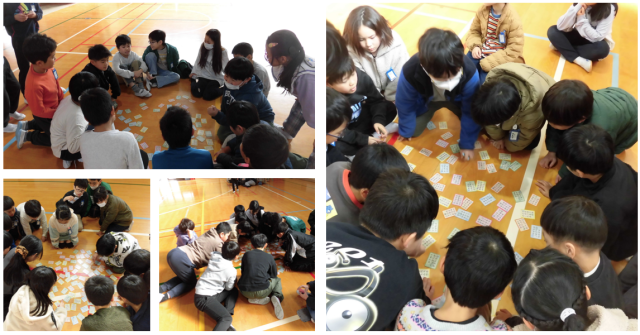 「覚えたからたくさんとれた!」「上の句でとれてて、すごいな!」「得意な札がとれなくて、くやしかった」など、子どもたちの声からも真剣に取り組んでいた様子が伝わってきました。 これまでの学習の成果を発揮しながら、楽しく活動することができました。