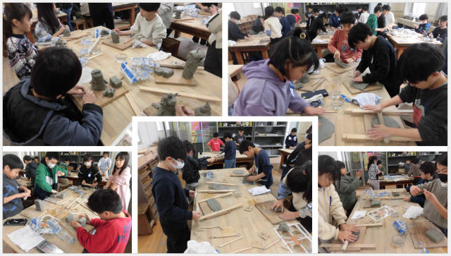 図画工作「ねん土の板を立ち上げて」では、粘土を板状にし、その形から発送を広げ、表したいものを想像しながら制作しました。粘土の感触を味わい、へらなどの道具を上手に使いながら、思い思いの表現をすることができました。