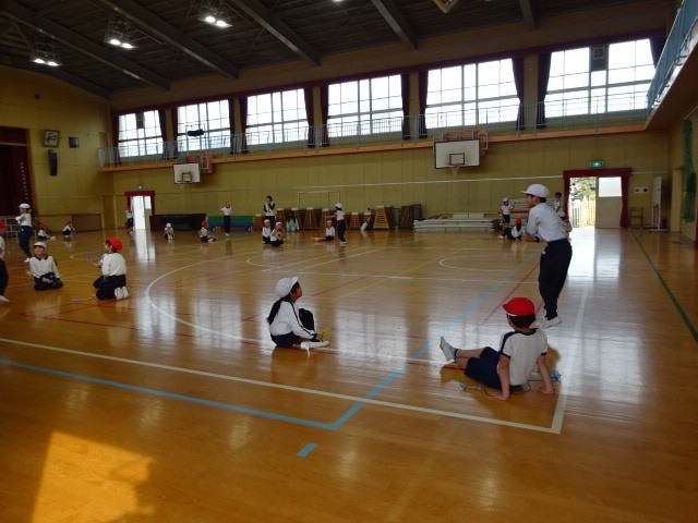 グループで順番に跳び、友だちに跳び方や跳んだ回数を見てもらいました。