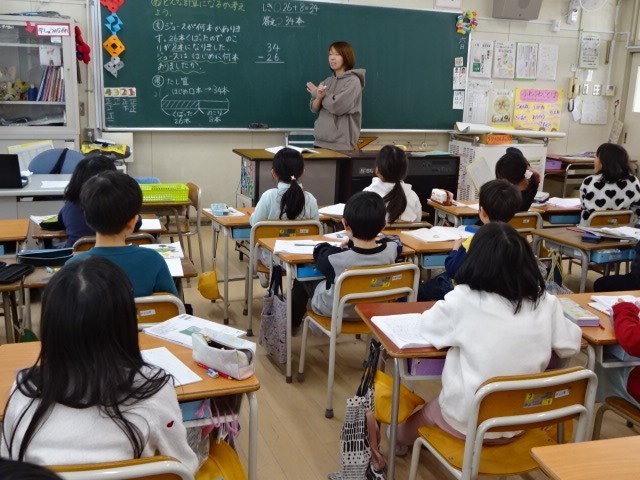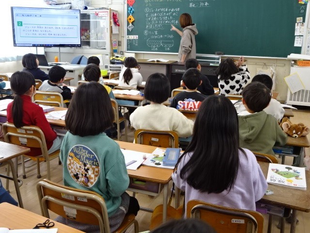 2年生の算数では、これまで学習してきたことを活用して問題の場面をとらえ、どのような計算をすればよいか考えながら学習を進めていました。