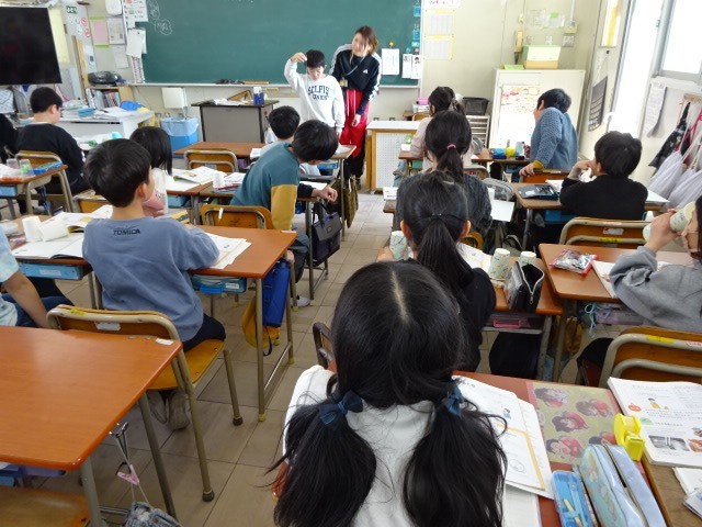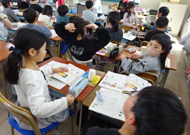 今日は一人一人が紙コップと糸で糸電話をつくって、振動で音が伝わることを実際に経験していました。