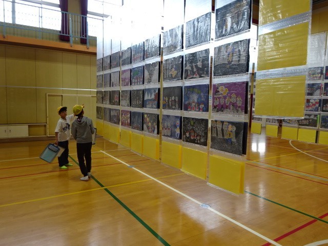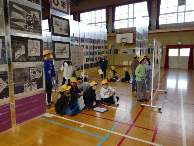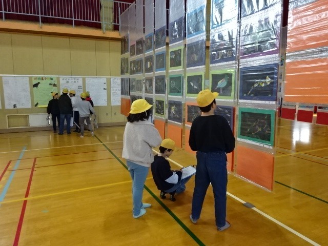 4年生が、現在開催している全校児童作品展を鑑賞していました。