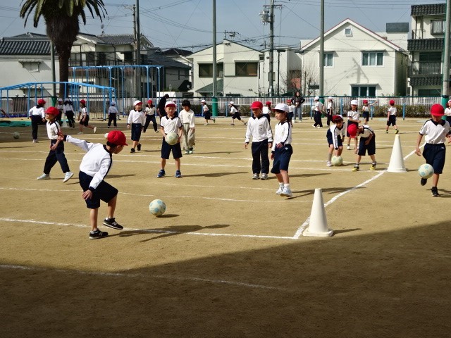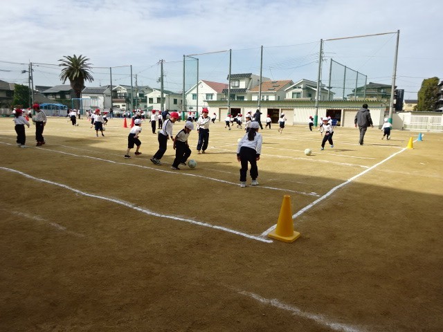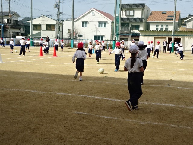 1年生の子どもたち、サッカーボールのけり方も上手になりました。