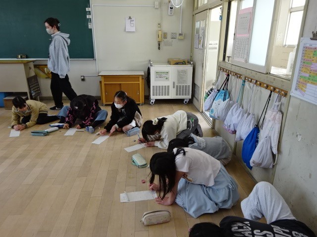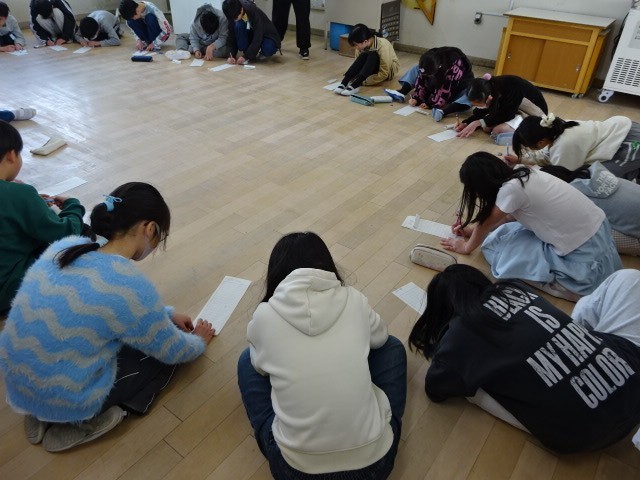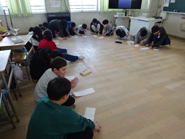 6年生の教室では、子どもたちが車座になって何かをしています。