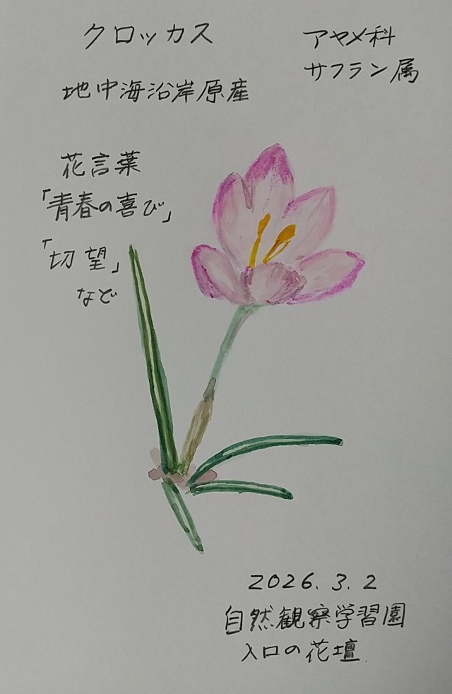 3月初めに学習園入口の花壇の中で、ひょっこり顔を出しました。