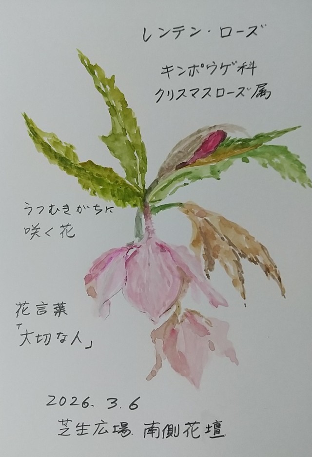 控えめに、うつむきかげんに咲く花。