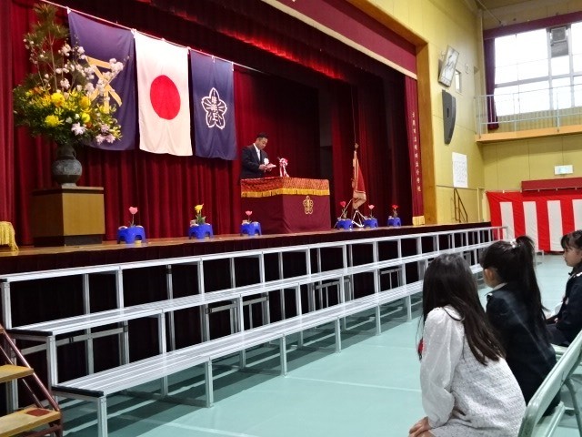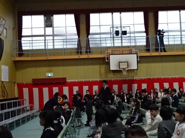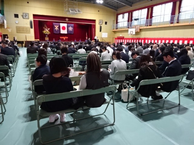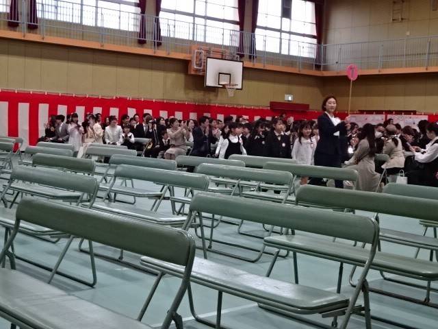 曇り空に、時々雨が混じる天候でしたが、桜の花びらがはらはら散る中で趣のある入学式になりました。