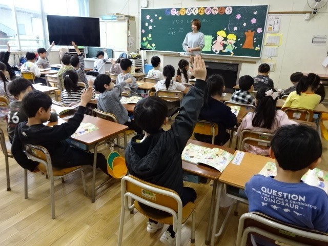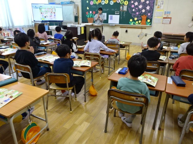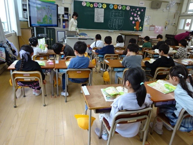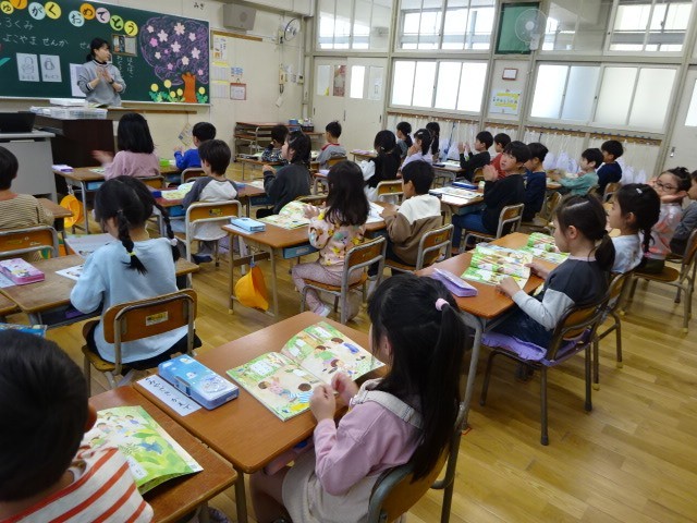始業式から3日目、1年生の教室では、こくごの教科書を開いていました。