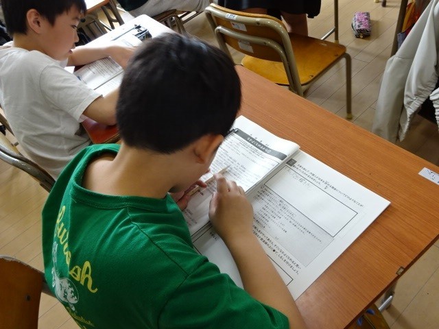 4年生が総合的読解力の教材分の読み取りに取り組んでいました。