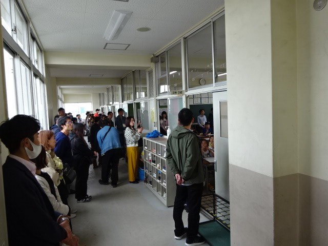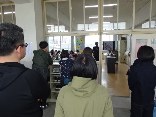 教室に入り切れず、廊下がいっぱいになるほどたくさんの保護者・家族の方に来ていただきました。