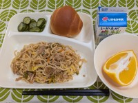 4月16日(木)のこんだては、「焼きそば、きゅうりのしょうがづけ、あまなつかん、...