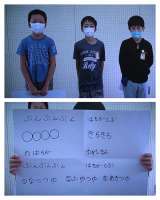 2年生がはちまきをしたお寿司屋さん、まぐろ、いか、えび、たまごやきのお寿司を運び...