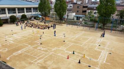 阿倍野警察の方々に来ていただき交通安全学習を行いました。1・2年生は安全で正しい歩行の仕方、3〜6年生は安全で正しい自転車の乗り方を学習しました。今日練習したことを毎日の生活にいかしましょう。