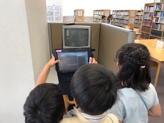 阿倍野図書館に見学に来ました。開館前の特別見学のため貸切りです。阿倍野図書館についてや本の貸出しの仕方などを教えてもらいました。