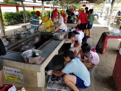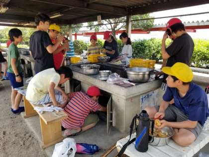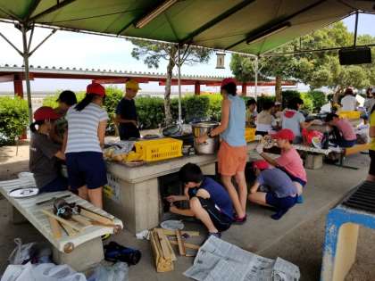 役割分担してカレーを作っています。火がすぐについた班もありました!