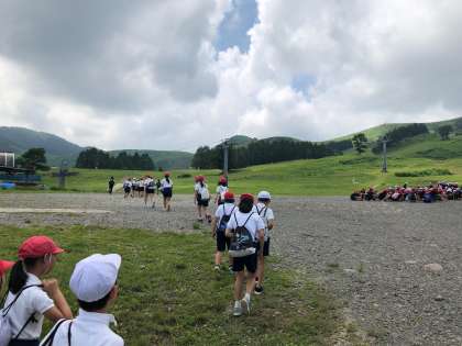 林間学習最初の活動は山登りです。少し曇っているので、コンディションは最高です。山頂目指していざ、出発ーー!