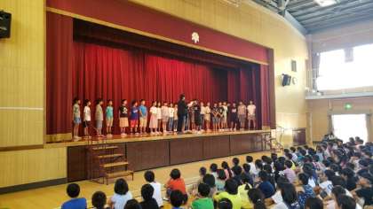 夏休み中に頑張って水泳に取り組んだ子どもたちの紹介がありました。