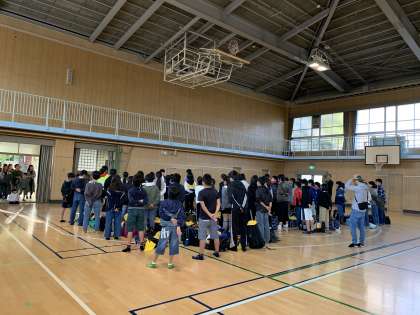 修学旅行の出発式を終え、志摩スペイン村へ向けて出発しました。