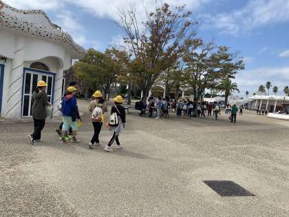 スペイン村を班ごとにまわっています!地図を見ながら目的のアトラクションまでたどり着けるかな?