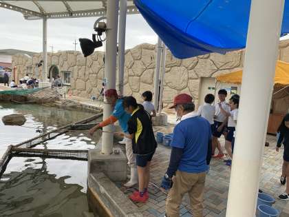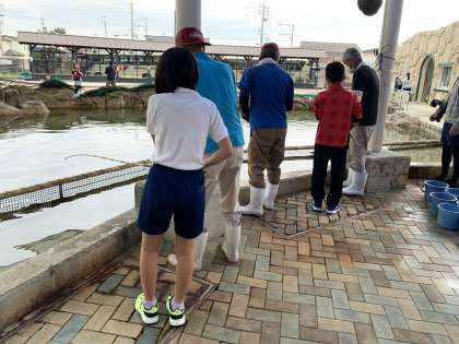まずは、干物にするアジを釣ります。静かにそっと竿を入れて慎重に引き上げます。ピチピチとび跳ねる元気なアジが釣れました!