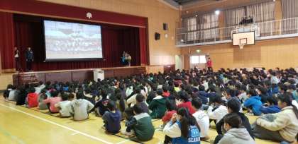 たくさんの行事や学習に取り組んだ2学期も今日で終わり。2学期の終業式を行いました。校長先生からは「大晦日」「小晦日」のお話がありました。また、今学期は4人の皆さんが、2学期を振り返った思い出について、タブレットを使って発表しました。さあ、冬休みも健康や安全に気を付けて元気に過ごしましょう。