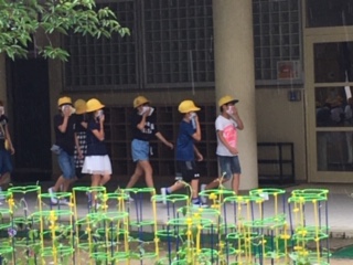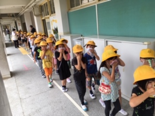 ハンカチを鼻と口に当てて、「お(さない)・は(しらない)・し(ゃべらない)・も(どらない)」の約束を守って、どの学年も静かに避難をすることができました。