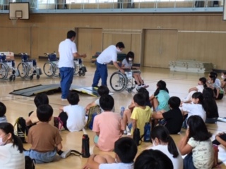 心身障がい者リハビリテーションセンターの方々をゲストティーチャーに招き、車いすの体験をしました。