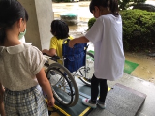 車いすに乗っている人が困っていたら…。正しい操作で安全に手助けすることができるでしょうか。この経験を生かしてほしいと思います。