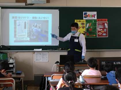 例年では、スーパーマーケットへ社会見学に行ってますが、今回はライフコーポレーションからゲストティーチャーに来ていただき出前授業をしてもらいました。