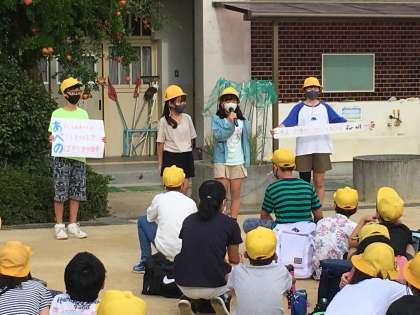 自然体験学習の出発式を行いました。出発式では、3日間のめあてや今日の活動の流れを確認しました。