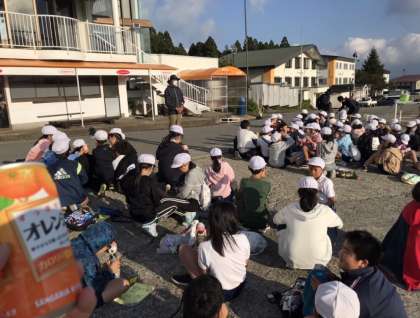 大きな怪我もなく全員宿舎に戻ってこれました!頑張ったご褒美にみんなオレンジジュースで乾杯です!次は箸作りです。