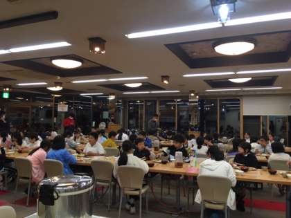 食堂で、おいしく夕食をいただきました。がんばって鉢伏山に登った子どもたち、食欲旺盛でした。