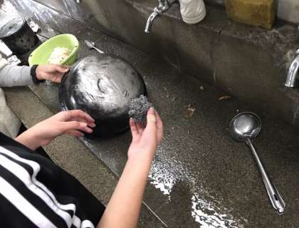 美味しいカレーを食べ終わったら、かたづけです。