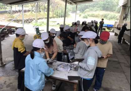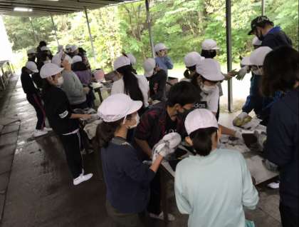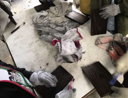 思い出の作品を作るためにみんな軍手を真っ黒にして一生懸命拭いています。