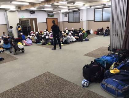部屋の片付け、帰る準備の終わった班から続々集まってきています。次に使う人のことを考えて、来た時よりも綺麗になるよう頑張っています。