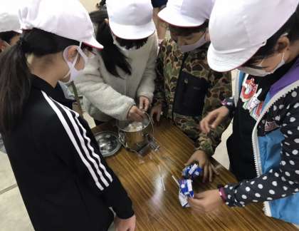 みんな美味しいアイスクリームになるように一生懸命、様々な方法を考え、協力しながら転がしています。