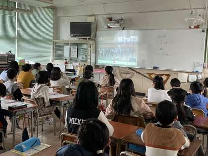 密を避けるために各学年がお祝いをしている様子を教室からオンラインで視聴しました。