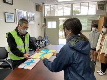 いつも子どもたちの登下校時の安全を見守ってくださっている見守り隊の方に感謝の気持ちを伝えました。