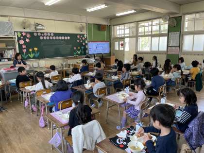 6年生が給食の準備のお手伝いをしてくれます。6年生ありがとう!