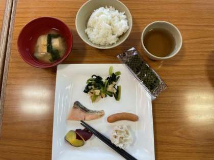 朝のつどいが終わって朝ごはんです。 いただきます!