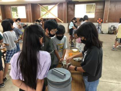 みんなで協力して美味しいアイスクリームを作ります。 一人ひとりの頑張りがアイスクリームの美味しさにつながります。ガンバレ!