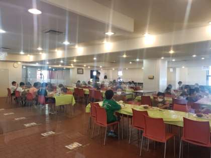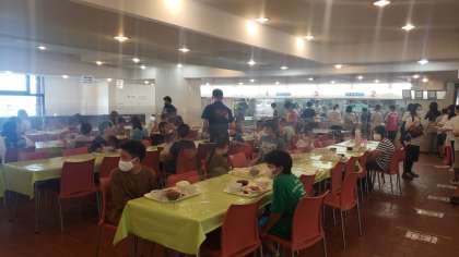 たくさん活動したので、みんなおなかペコペコです。しっかり食べて、キャンプファイアに備えます。