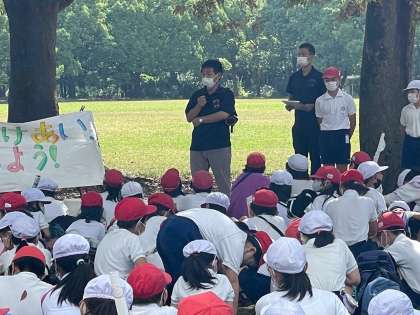 さわやかな秋晴れの下、開会式です。めあてを確認し、いよいよスタートです。