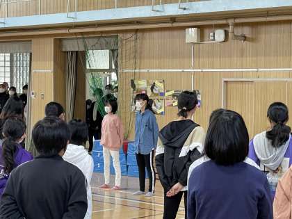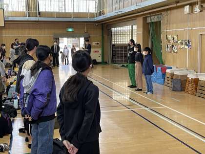 さぁ待ちに待った修学旅行へ出発です。講堂では出発式が行われました。