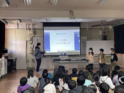 11月12日の社会見学で行った、駒川商店街のココロホールで商店街全体のお仕事をされている方が、商店街のヒミツについて教えに来てくださいました。